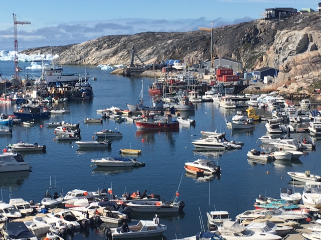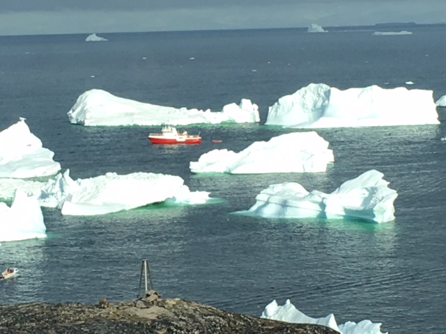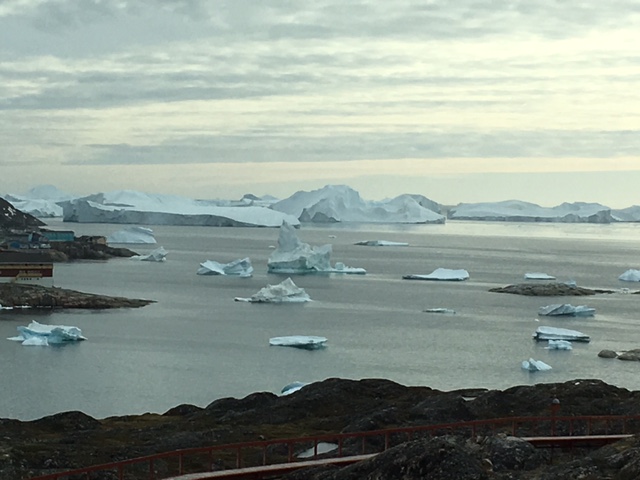 Great flight to Ilulissat, Greenland. About a 3 hour flight from Reykjavik. Ilulissat is 150 miles north of the Arctic Circle . The icebergs and glaciers are amazing. During the summer months, the sun stays at 12 high and never sets.